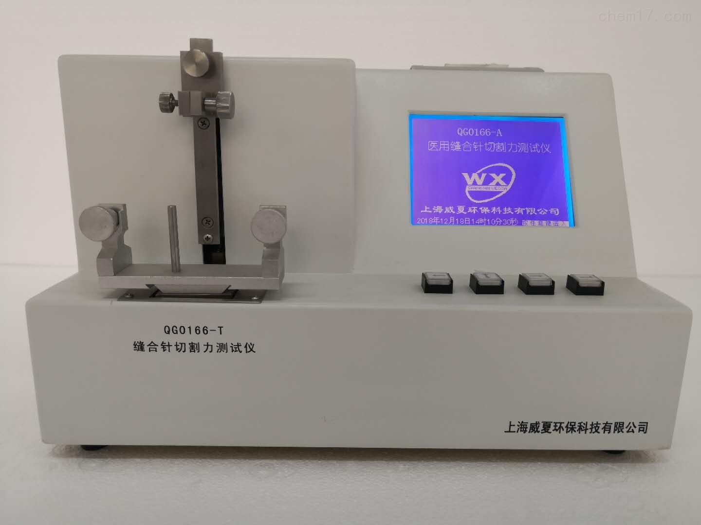QG0166-T縫合針切割力測試儀主要用于測定醫(yī)用縫合針三角韌口鋒利度的物理特性,是鑒定醫(yī)用縫合三角針韌口鋒利度的重要手段之一。